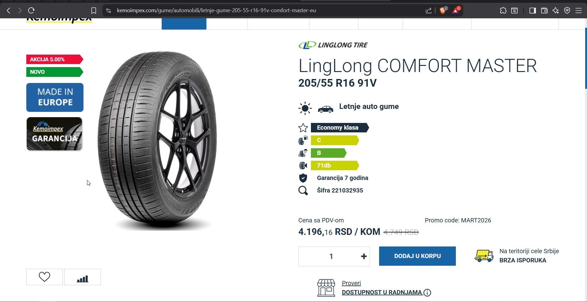 shuxx 20944 Posted March 7 komšija kupio letnje ling long, stavio na BRAVO, 205 55 16, letnje, 5100din kom, baš me interesuju utisci. Preneće mi vremenom... 1 shomiNBGD reacted to this Quote Share this post Link to post Share on other sites