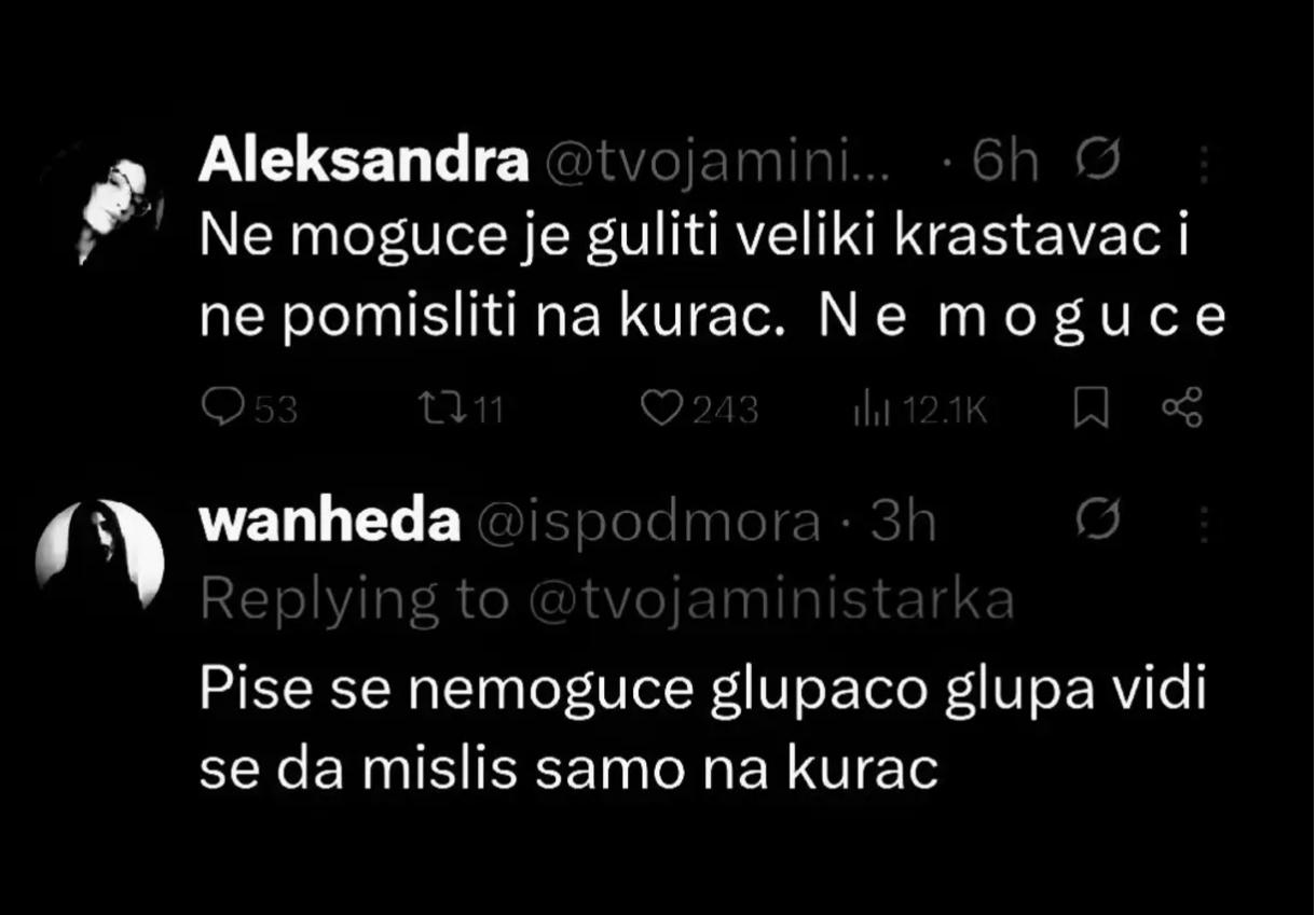city 1064 Posted June 26, 2025 6 hours ago, Ivan said: Ovaj mora da je peder, umesto da podrzi zenu on tupi o pravopisu 2 Woodoo and neshtry reacted to this Quote Share this post Link to post Share on other sites