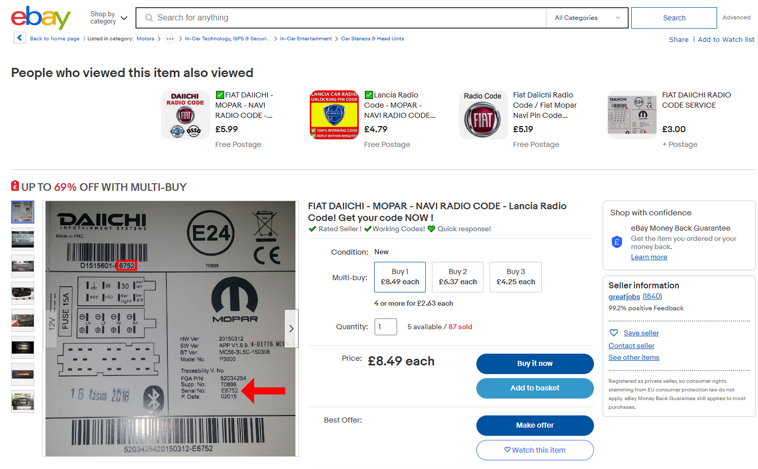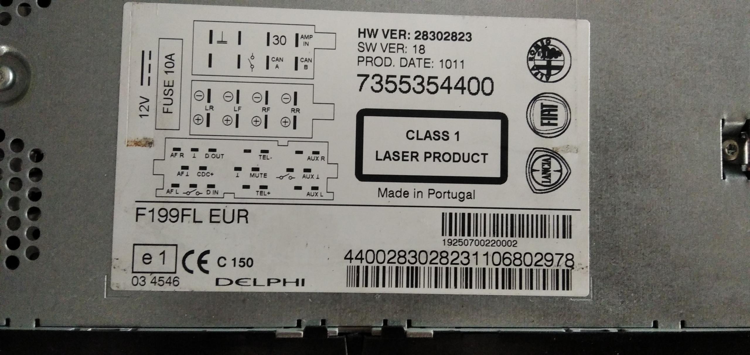 Потребан ми је код за фабрику Фиатов Блаупункт, серијског броја: БП 638697096835