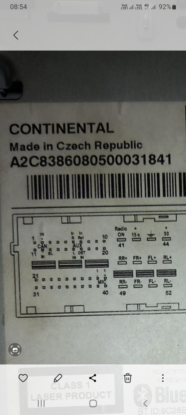Neophodan kod za Visteon fabrički radio. Serial No. M013210