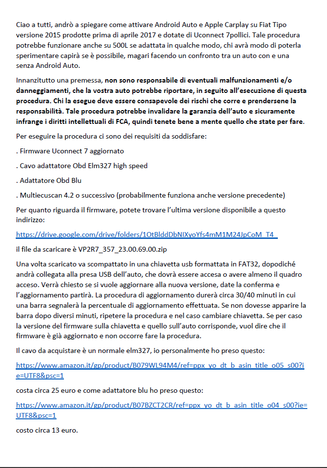 aleksandarkok 4 Posted March 22, 2019 (edited) Evo nasao sam isto uputstvo pa sam upload-ovao pdf-ove: - Originalno uputstvo na italijanskom jeziku: https://www.fiat-lancia.org.rs/Korisno/attivazione-aa-carplay-fiat-tipo-2015-v2.pdf - Prevedeno na engleski preko online aplikacije: https://www.fiat-lancia.org.rs/Korisno/attivazione-aa-carplay-fiat-tipo-2015-v2.it.en.pdf Edited March 27, 2019 by neshaoct stavio linkove na Forumskom serveru. 1 neshaoct reacted to this Quote Share this post Link to post Share on other sites