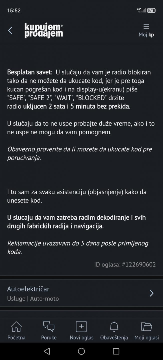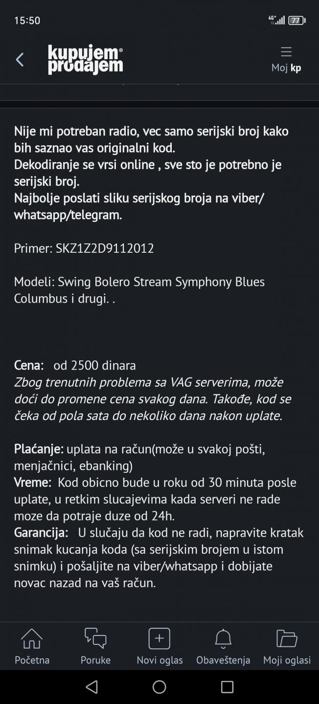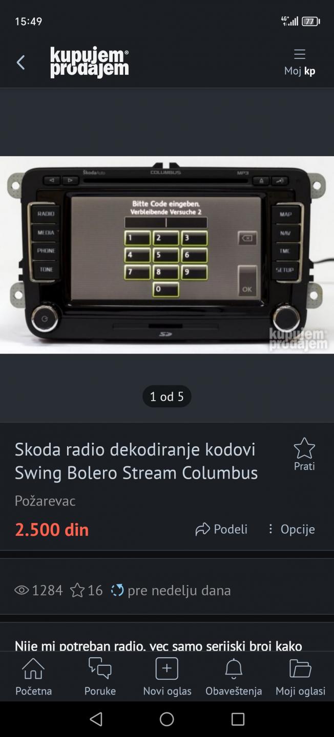 PremieRacing 6276 Posted November 20, 2024 On 11/5/2024 at 9:44 AM, PremieRacing said: ... Trebaće i meni uskoro pomoć oko koda za fabrički radio za Polo 6N Evo ga, upomoć! ako mi ima pomoći... 3BO 035 191 D VWZ1Z7B6511046 Quote Share this post Link to post